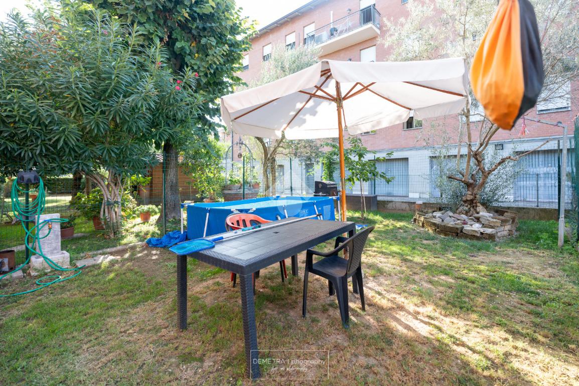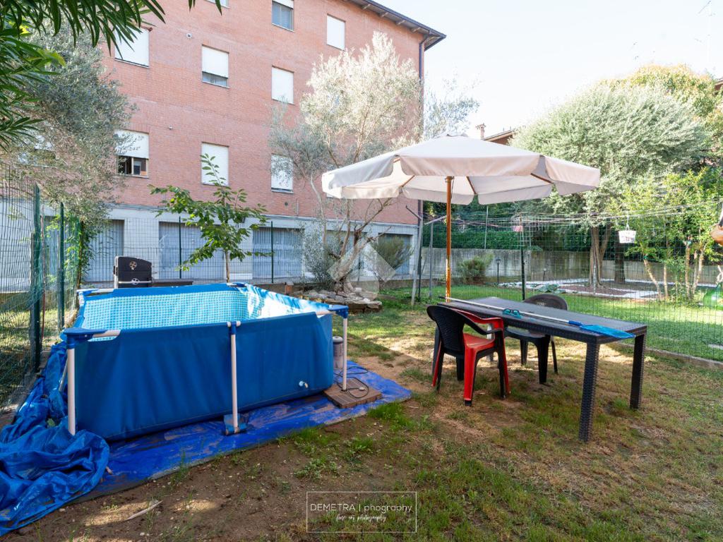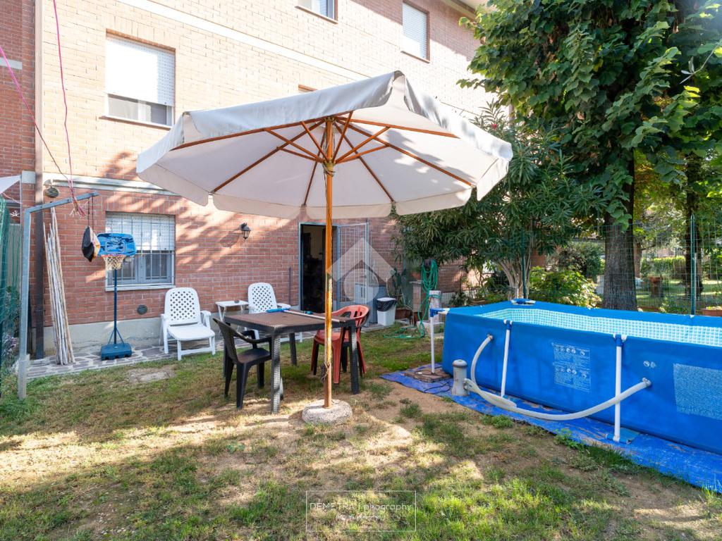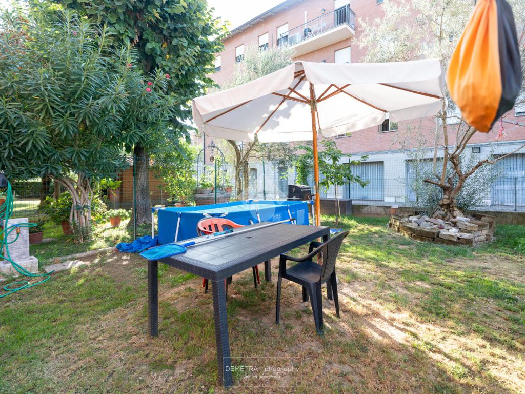 Internamente, gli spazi sono così sviluppati: a piano terra vi è l'ingresso indipendente, una autorimessa di 32 mq, un bagno lavanderia di ampie dimensioni con doccia e sanitari, un ripostiglio e l'accesso all'area cortiliva di proprietà, piantumata e recintata.