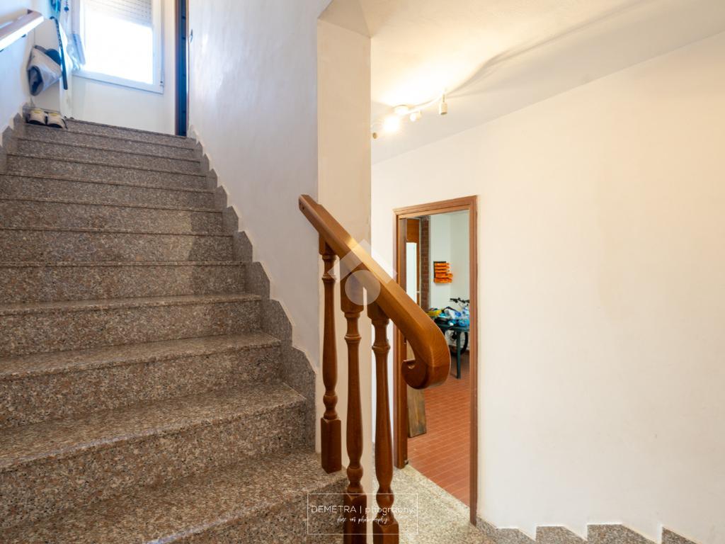 Il piano primo, accedibile da scala interna, è composto da ampio soggiorno con terrazzo loggiato, cucina abitabile di 32 mq.