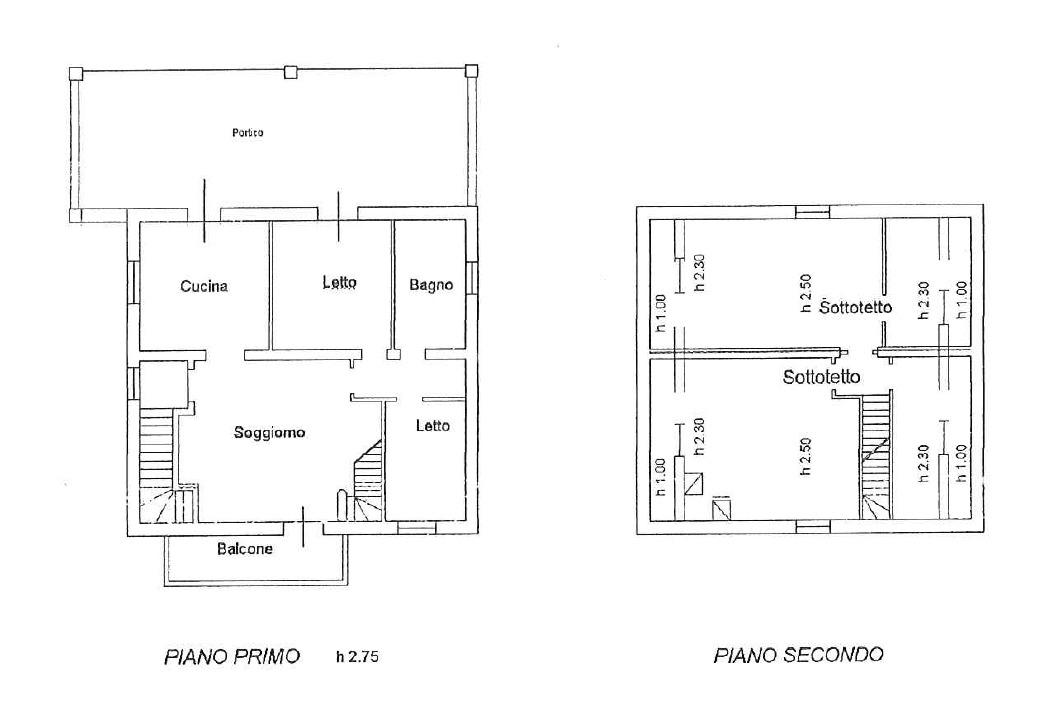 L’unità al piano superiore, servita da scale in granito, è composta da soggiorno, balcone, cucina abitabile con sfogo in un ampio terrazzo in parte con coperto in legno a vista, in parte piastrellato, disimpegno, 2 camere da letto, 2 bagni, con sovrastanti 4 locali ad uso soffitta, attualmente al grezzo e con copertura in legno a vista.
