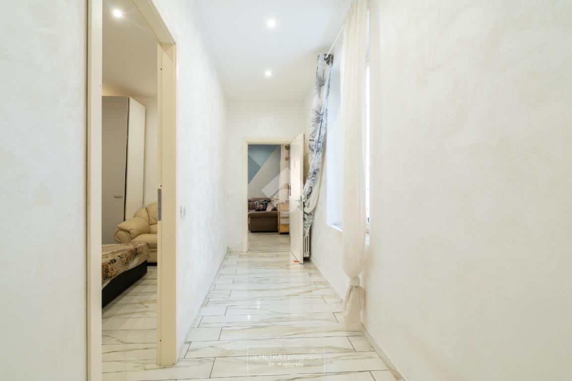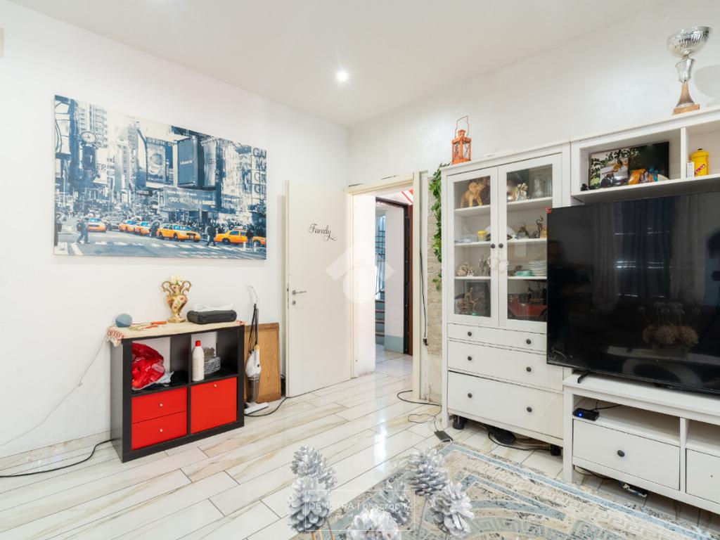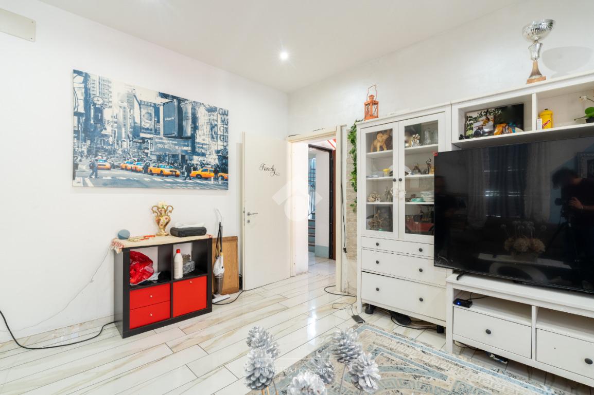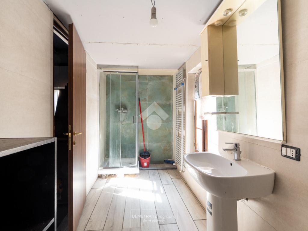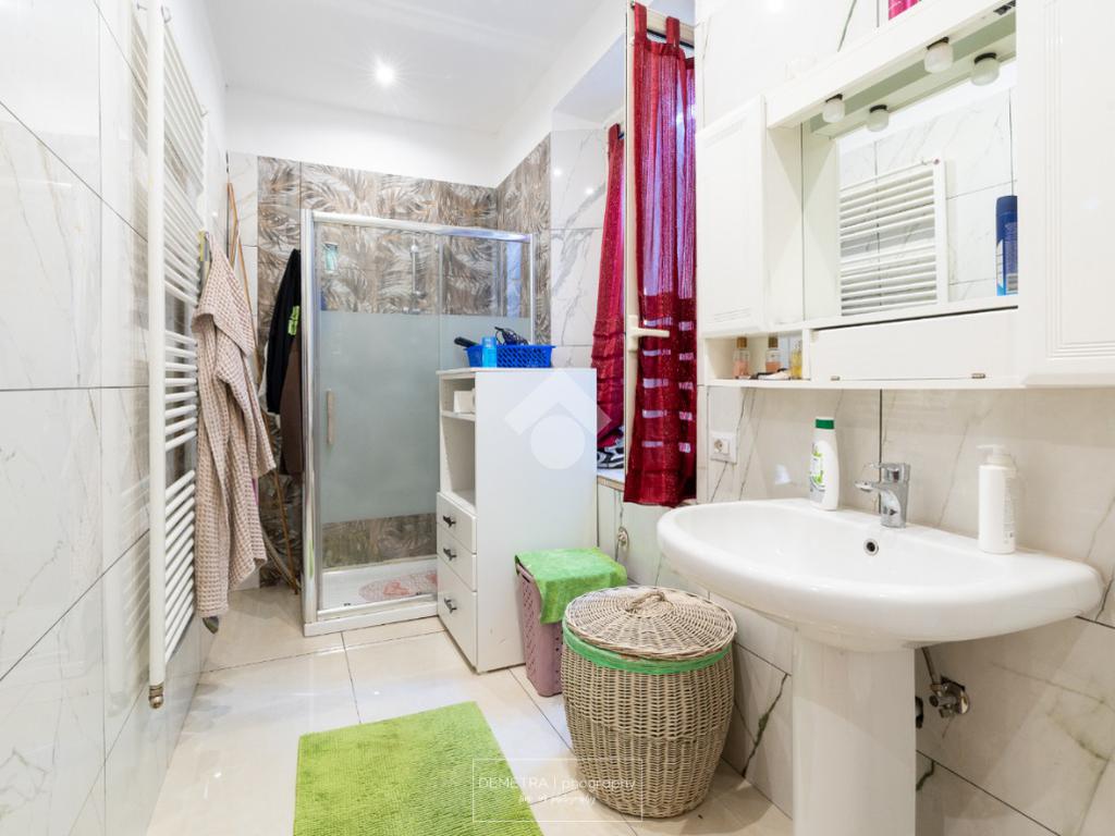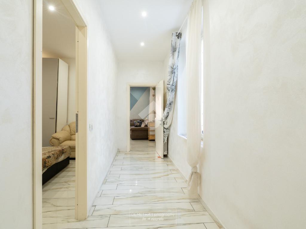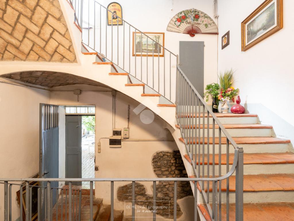 Entrando dal portone, la scalinata larga e luminosa porta ai vari livelli: al piano interrato le cantine, ben 4 vani. al piano primo l'abitazione di quasi 140 mq, composta da: ingresso, soggiorno, cucina abitabile, un ampio studio, una camera da letto, un bagno ed un disimpegno finestrato ben utilizzabile anche come piccola camera da letto. Il piano è stato gradevolmente ristrutturato.