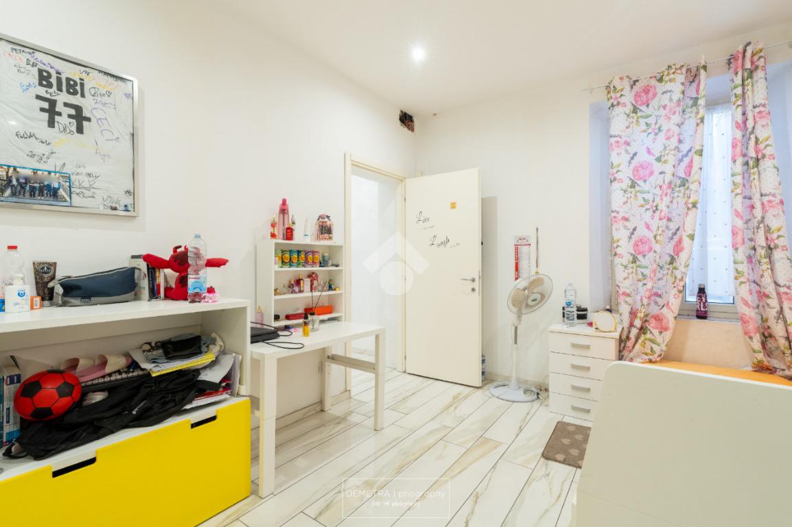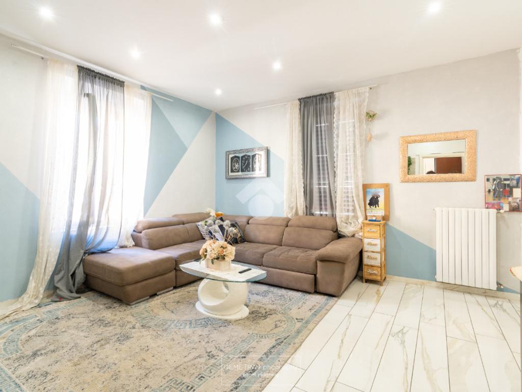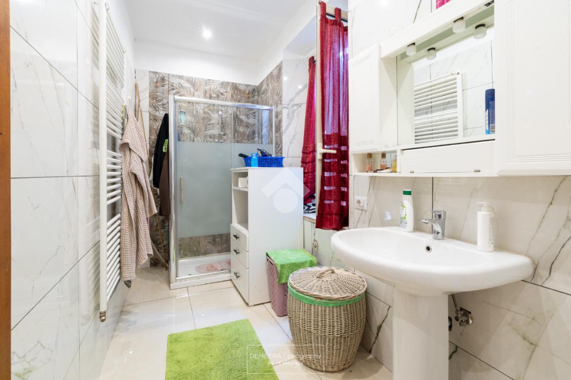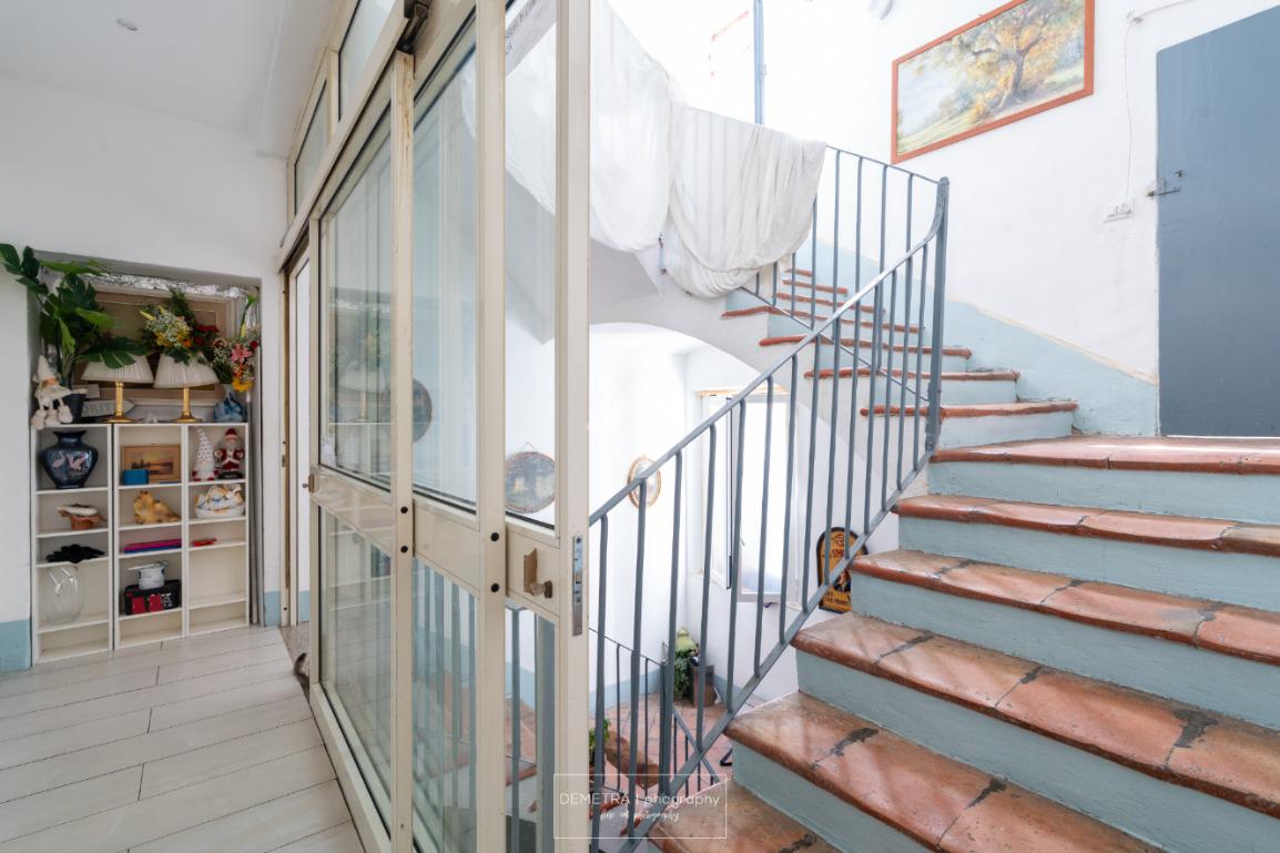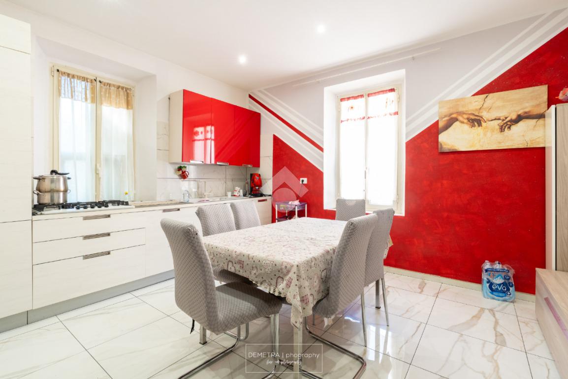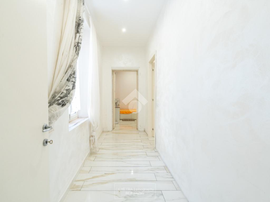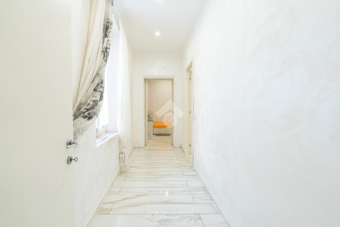 Entrando dal portone, la scalinata larga e luminosa porta ai vari livelli: al piano interrato le cantine, ben 4 vani. al piano primo l'abitazione di quasi 140 mq, composta da: ingresso, soggiorno, cucina abitabile, un ampio studio, una camera da letto, un bagno ed un disimpegno finestrato ben utilizzabile anche come piccola camera da letto. Il piano è stato gradevolmente ristrutturato.
