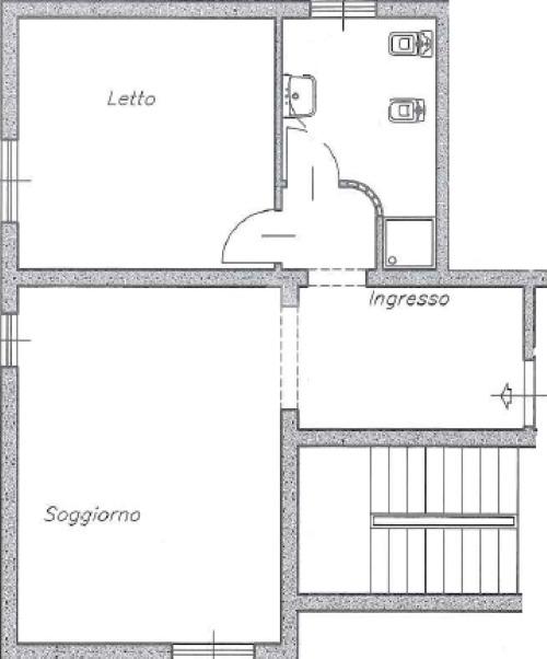 Internamente l'immobile è in buono stato di conservazione, con finiture di primi anni 2000. si compone di ingresso, soggiorno con angolo cottura, disimpegno notte, camera da letto matrimoniale e bagno con doccia.