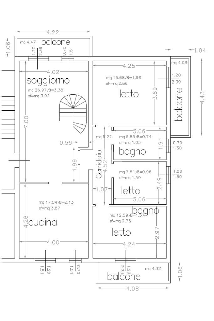 La disposizione interna garantisce spazio sufficiente per famiglie numerose o per chi desidera avere stanze aggiuntive per ospiti o studio; in particolare l'immobile si compone di ingresso al secondo piano su sala con balcone, cucina abitabile, disimpegno notte con split per l'aria condizionata, tre camere da letto, due delle quali con balcone ed un bagno.