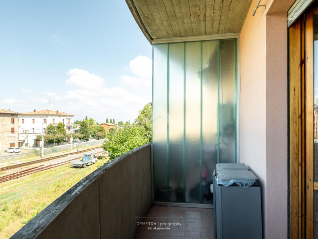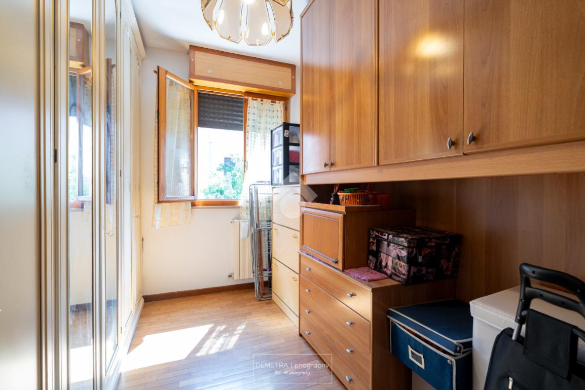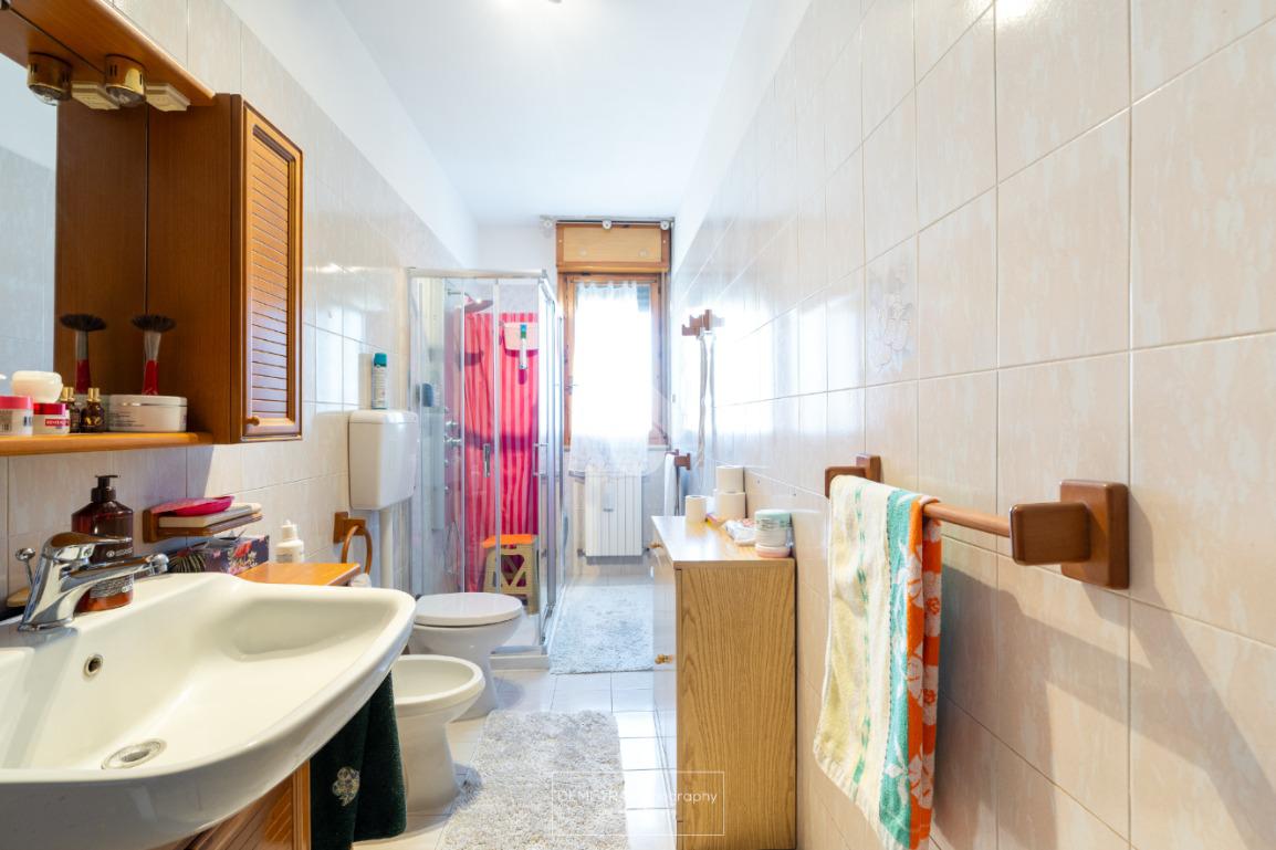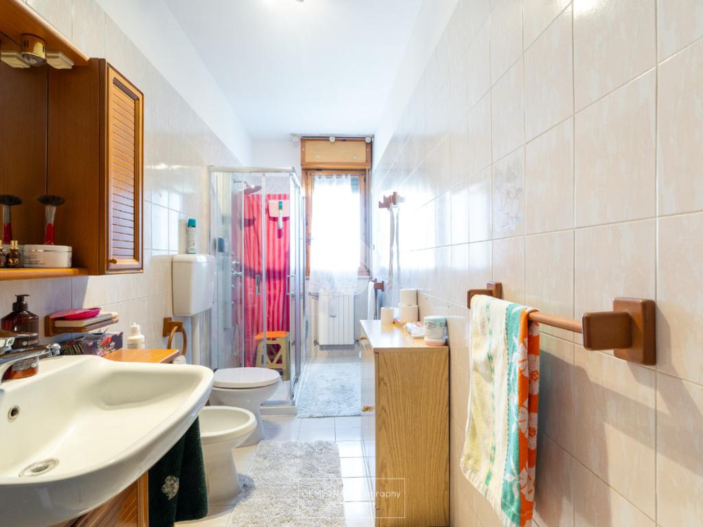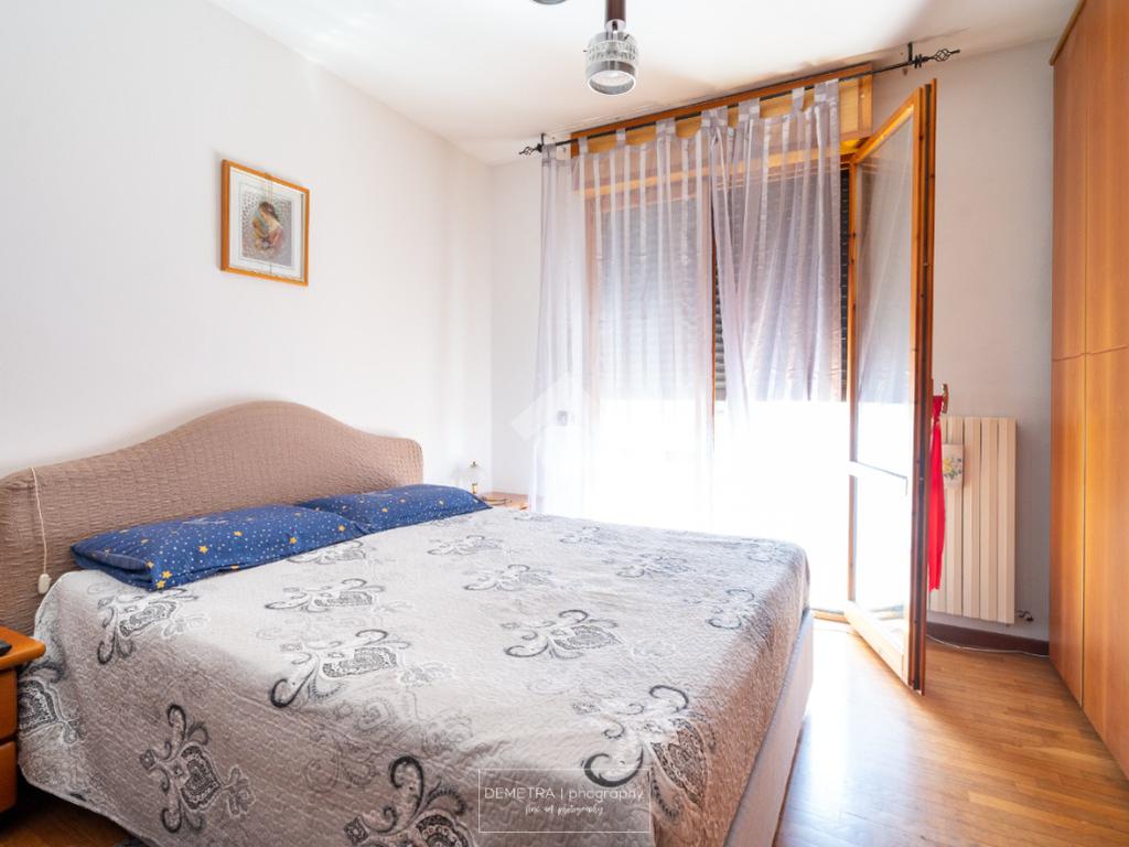 Le due camere da letto, di cui una con accesso diretto al secondo balcone, offrono comfort e privacy. Il bagno è dotato di una pratica doccia.