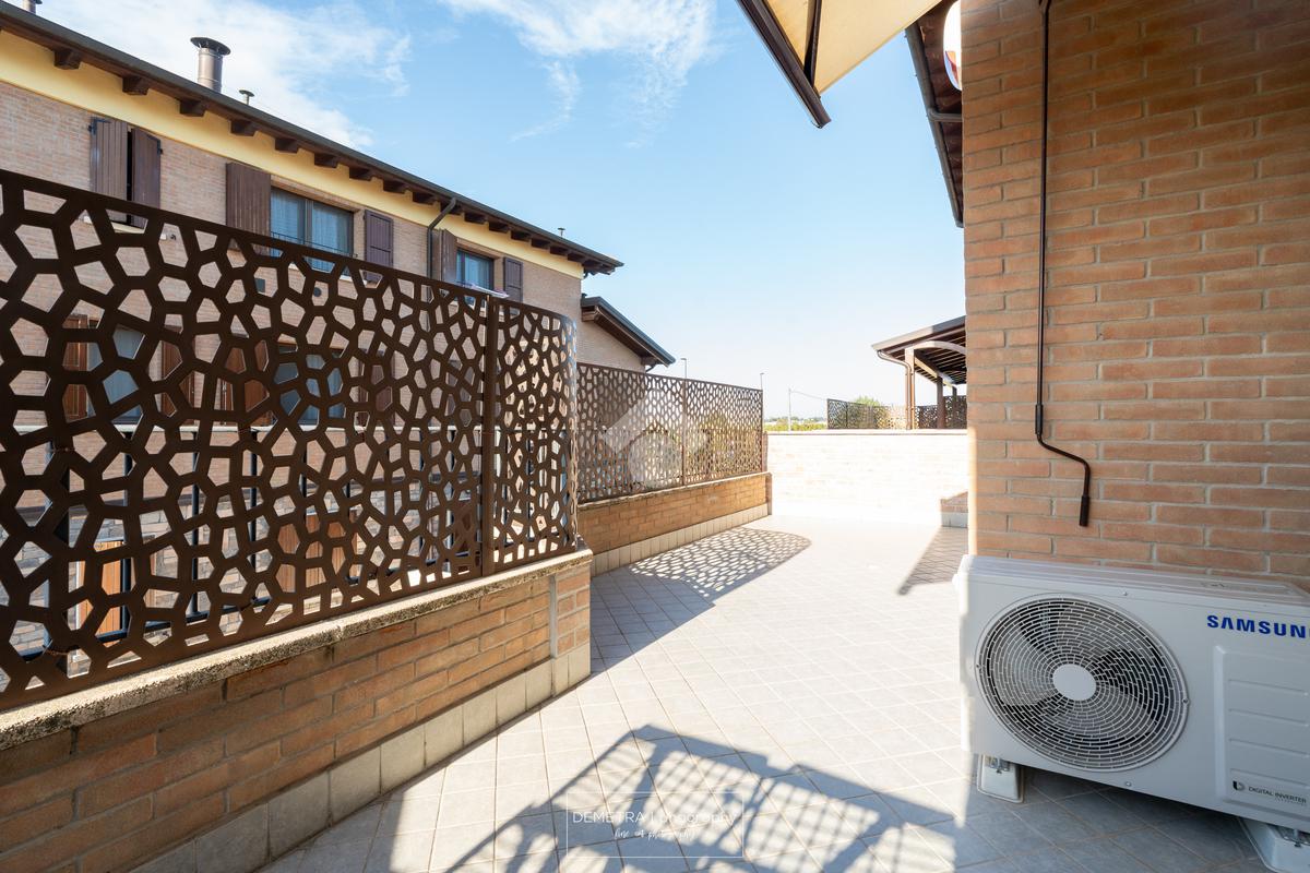 L'immobile è dotato di impianto di climatizzazione sia nella zona giorno che nella zona notte, impianto di allarme, caldaia a condensazione e tendoni parasole elettrici.