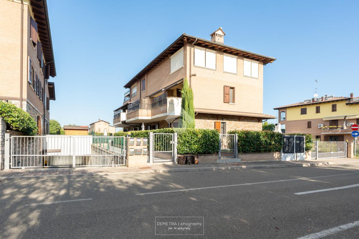 La palazzina, di sole 6 unità abitative, è parzialmente in pietra a vista e parzialmente intonacata e tinteggiata con le autorimesse poste al piano interrato.