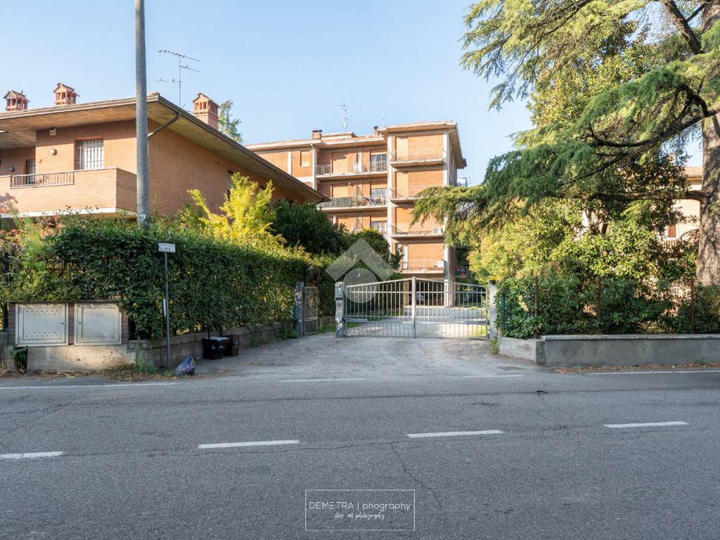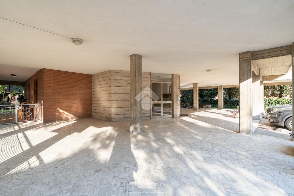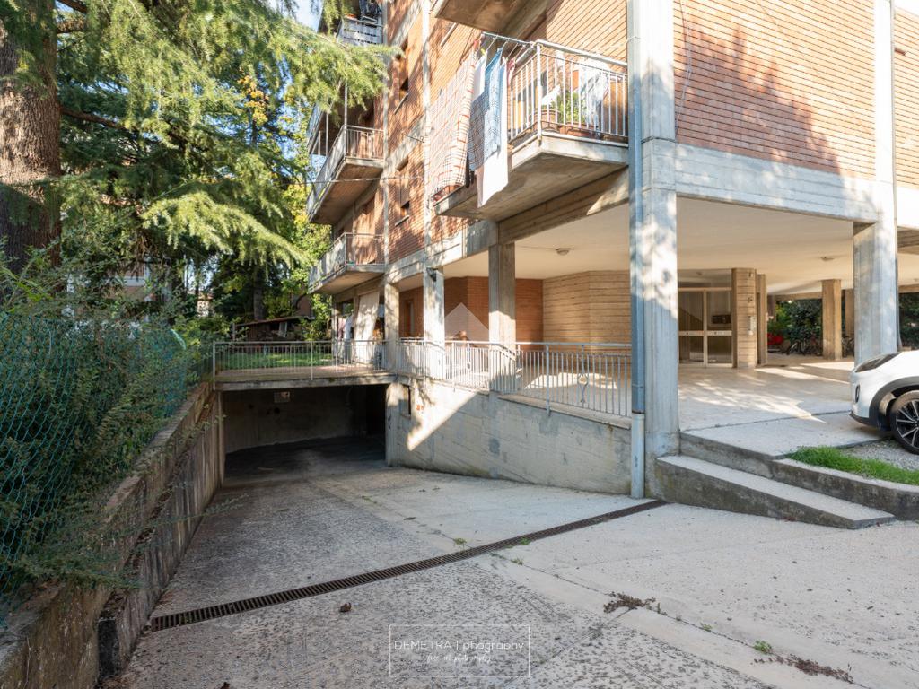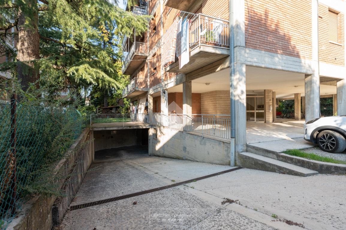 La palazzina esternamente si presenta in facciavista, con una area cortiliva che permette il parcheggio delle auto dei condomini.