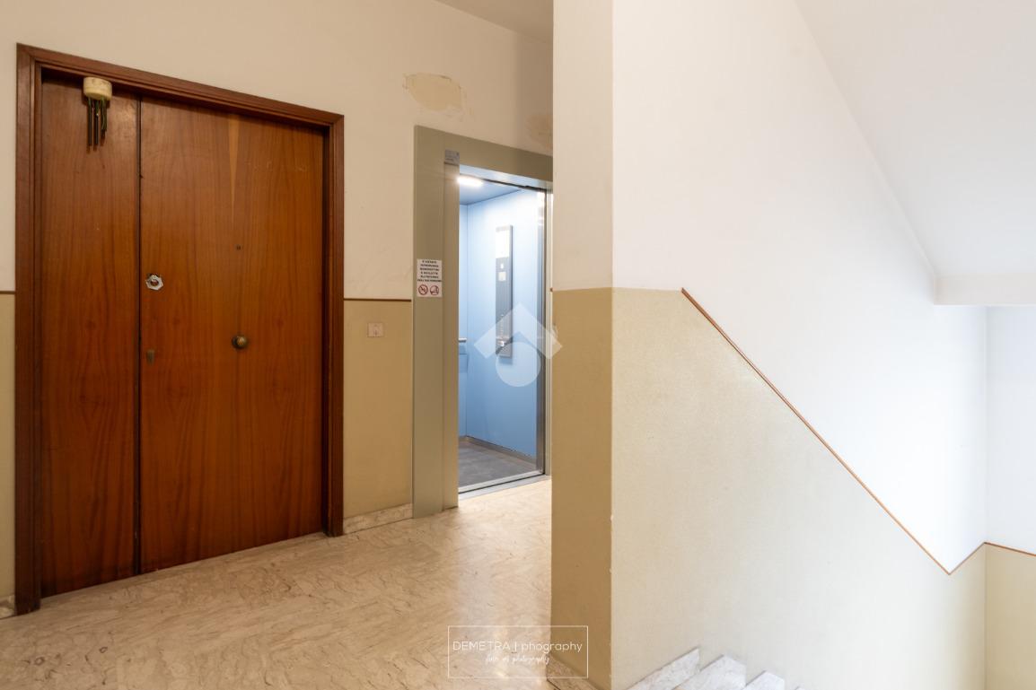 L'immobile oggetto di vendita si trova al quarto piano, raggiungibile da ascensore (sostituito recentemente) ed è composto da ingresso, ampio soggiorno con accesso ad un balcone, cucina abitabile, bagno, due camere da letto matrimoniali, servite rispettivamente da un balcone ed un ampio terrazzo pavimentato.