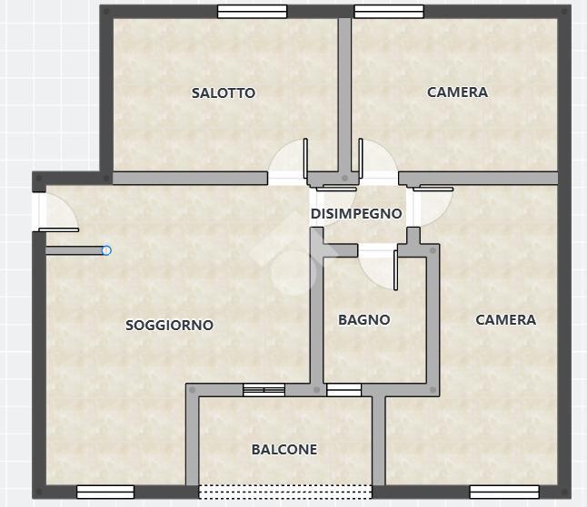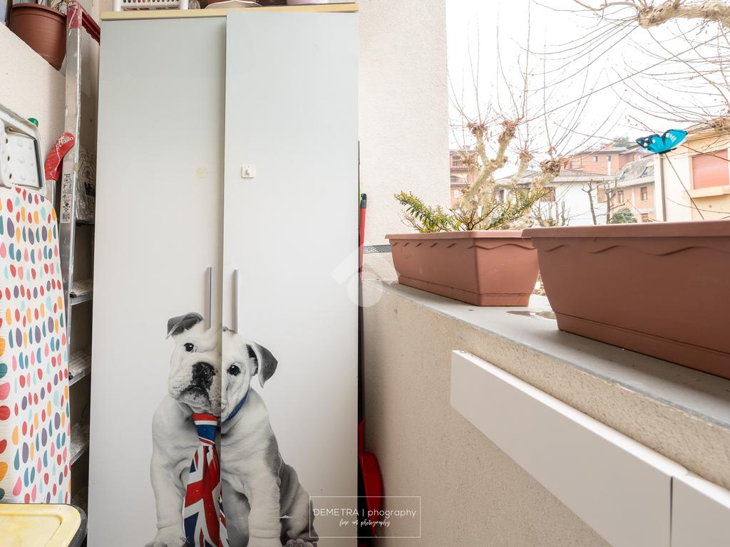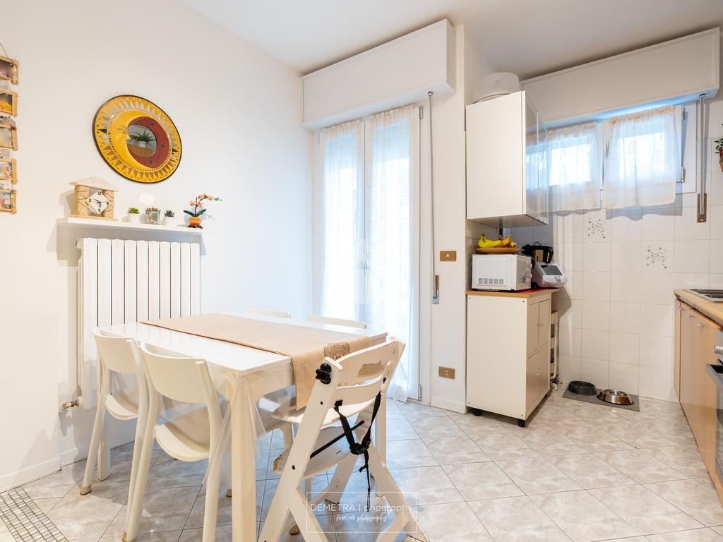 Situato al piano primo, l'immobile offre tre locali ben distribuiti: una sala accogliente e una cucina separata con accesso diretto a un balcone, perfetto per momenti di relax all'aperto.