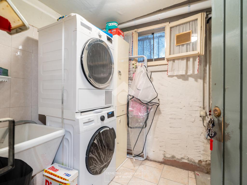 Al piano terra, l'appartamento dispone di un garage privato, una cantina e una lavanderia, offrendo spazi aggiuntivi per le esigenze quotidiane.