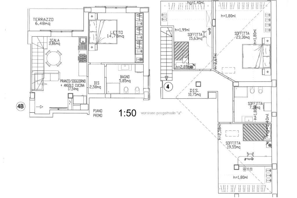Distribuito su due livelli, questo spazioso appartamento di 129 mq offre la possibilità di scegliere le finiture, permettendo di creare un ambiente su misura.