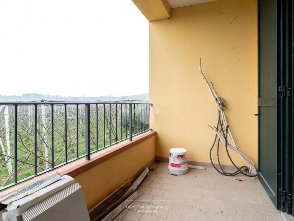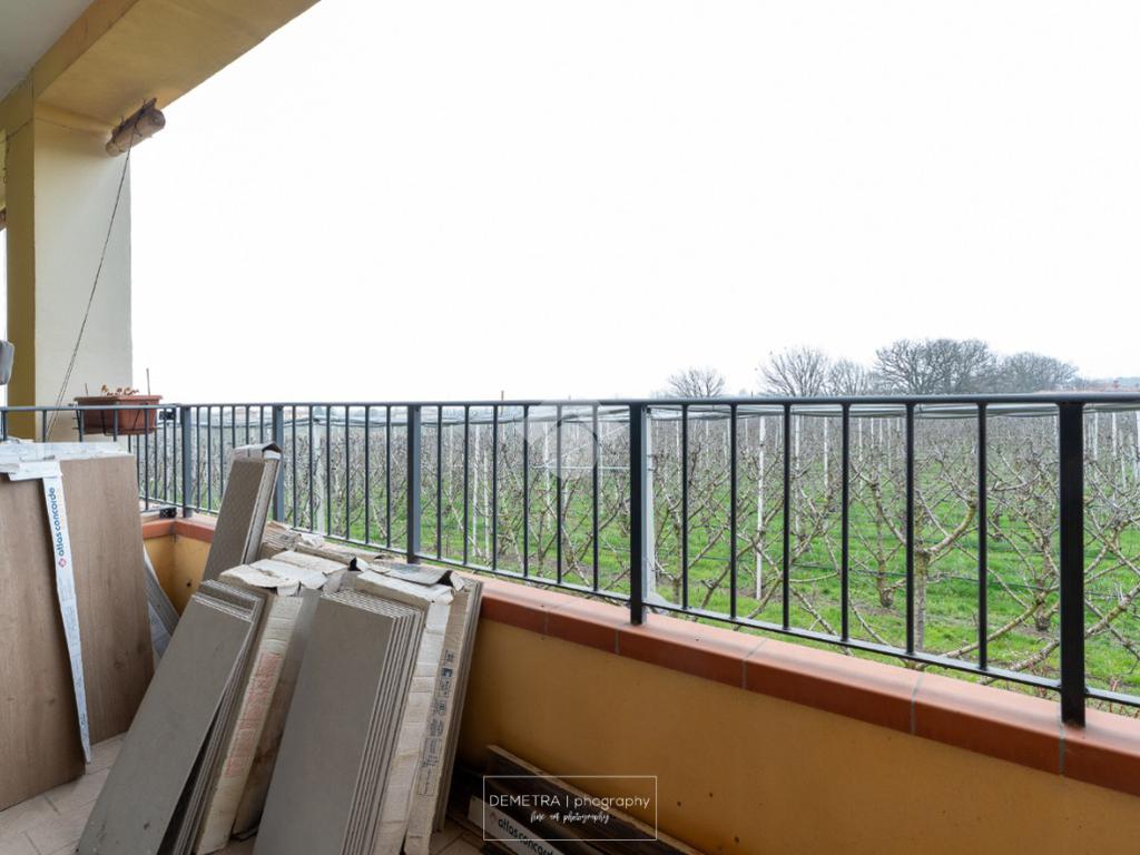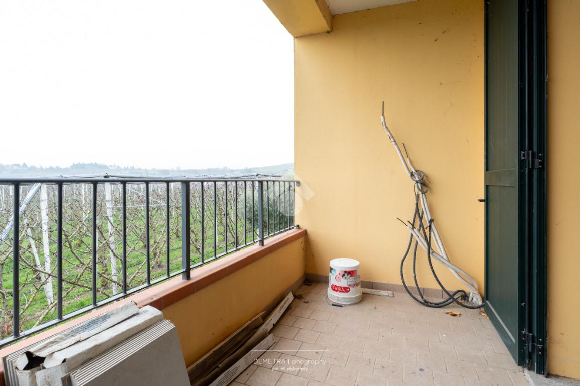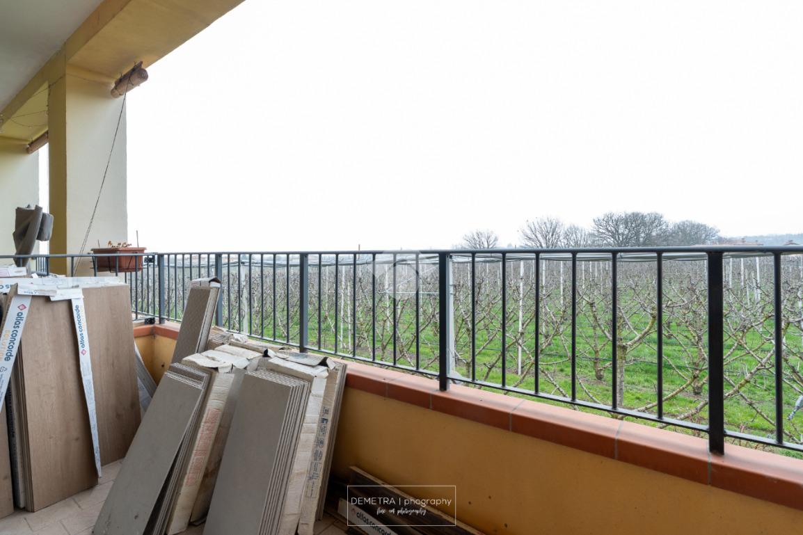 Il balcone rappresenta un piacevole spazio esterno per momenti di relax, affacciato su una zona rurale che offre tranquillità e contatto con la natura, pur rimanendo a breve distanza dalla città.