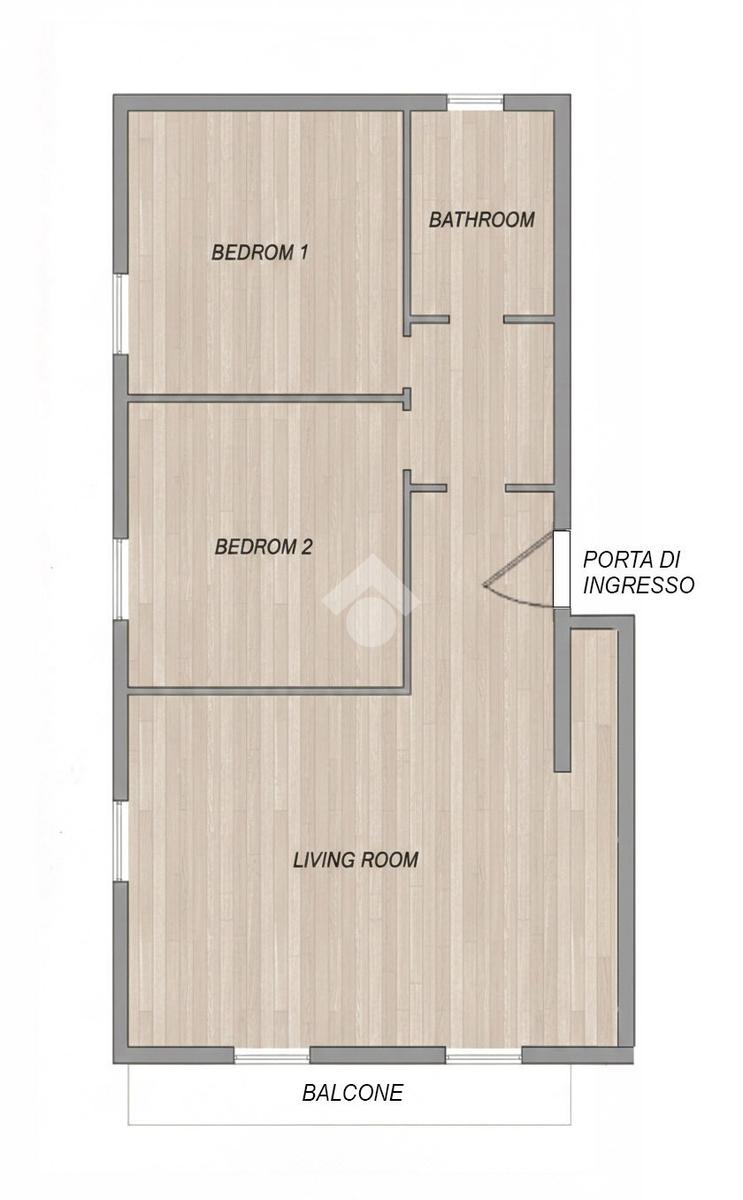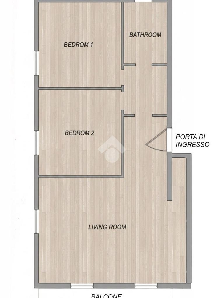 L'appartamento offre spazi ben distribuiti: una ampia sala con zona cottura e angolo dispensa. La zona giorno gode inoltre l'accesso al balcone; due camere matrimoniali che garantiscono comfort e privacy, e un bagno moderno con doccia.