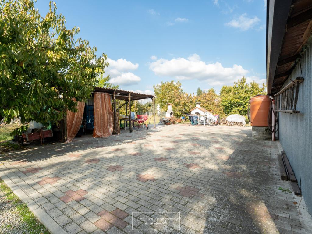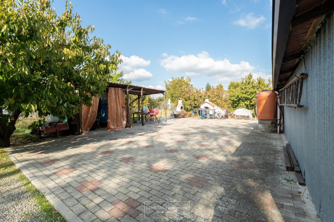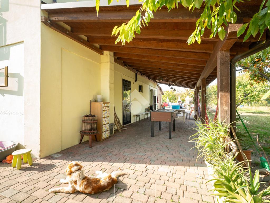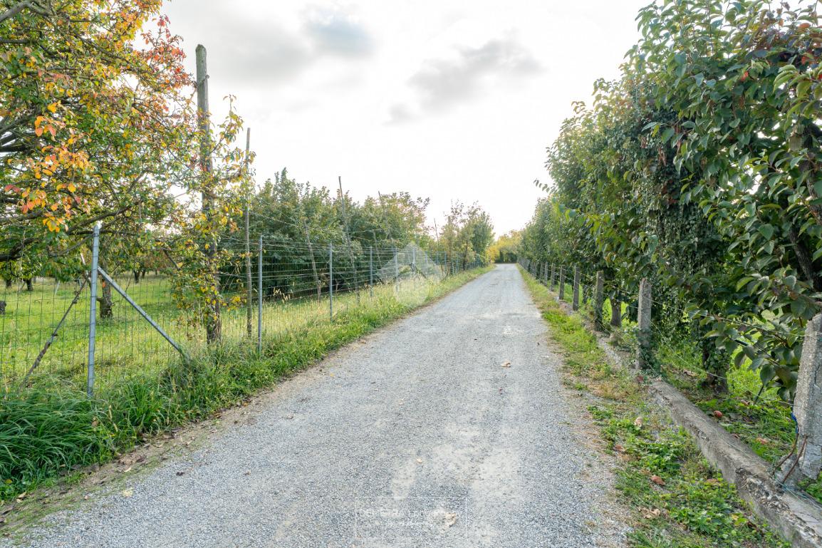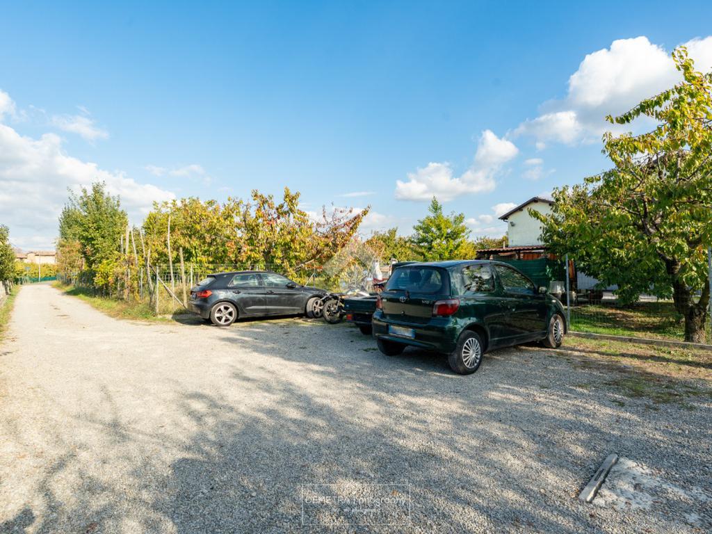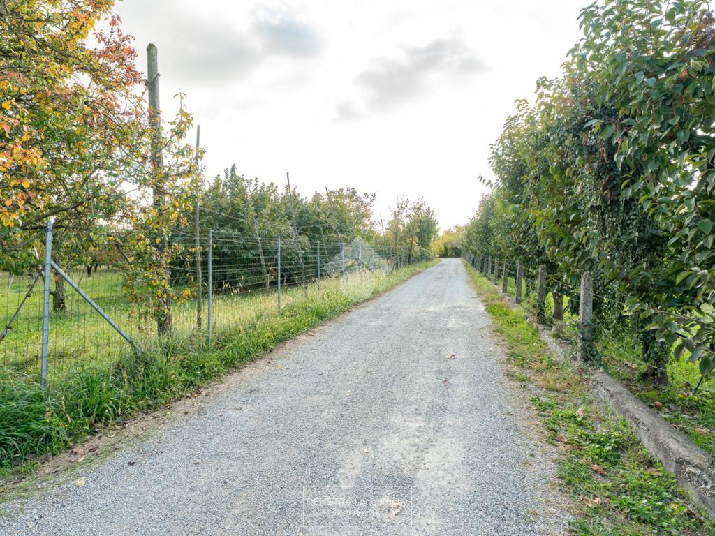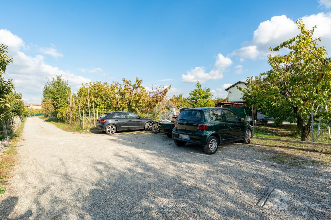 Il fabbricato esternamente si presenta parzialmente tinteggiato ed intonacato di giallo ed in parte in pietra a vista. Tutto attorno vi è l'area cortiliva, parzialmente inghiaiata e parzialmente pavimentata e circa 6000 mq di terreno piantumato a ciliege.