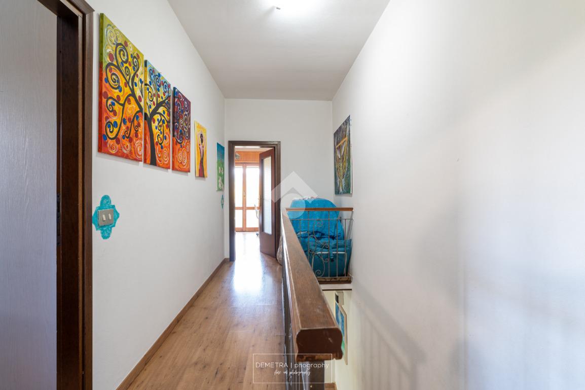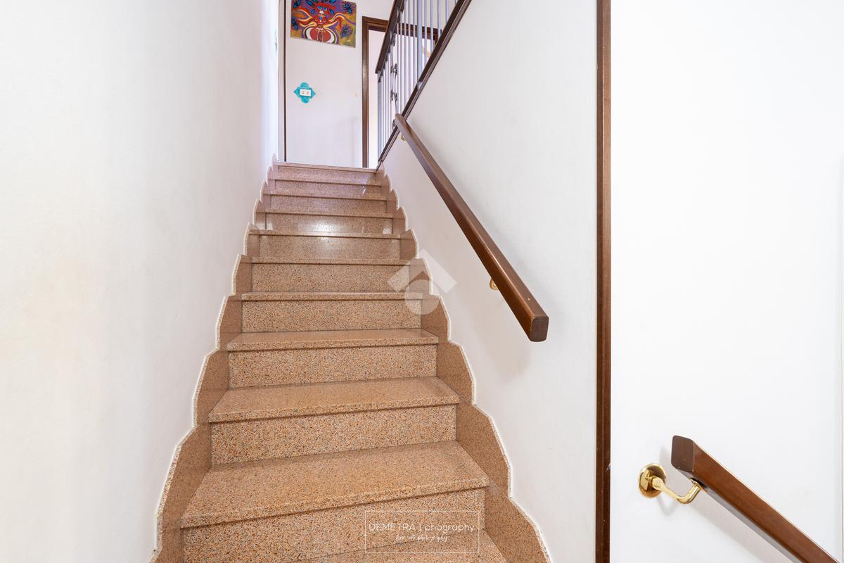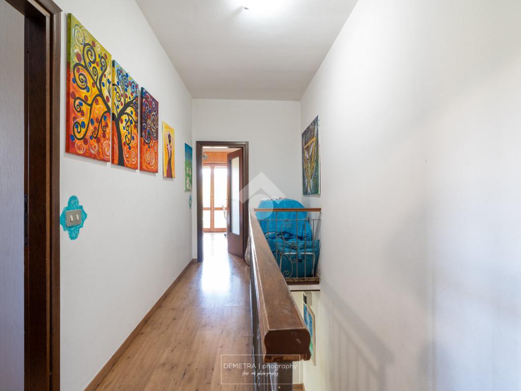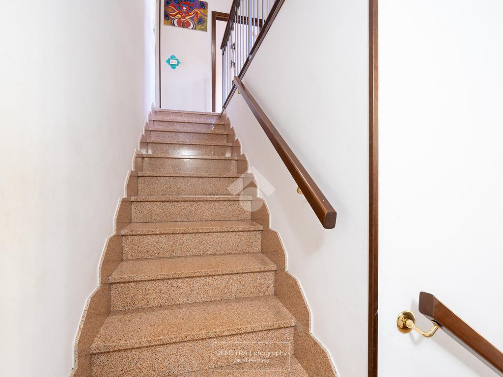 Al piano primo si sviluppa l'area abitativa ed è composta da: ingresso, soggiorno, sala da pranzo e cucina, 2 bagni, 4 camere da letto e un ripostiglio.