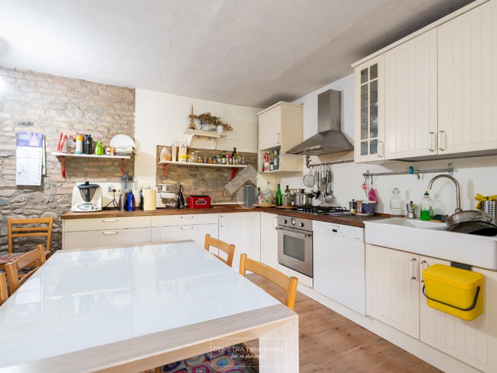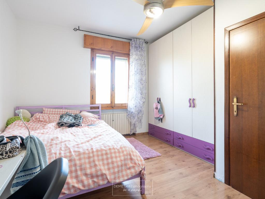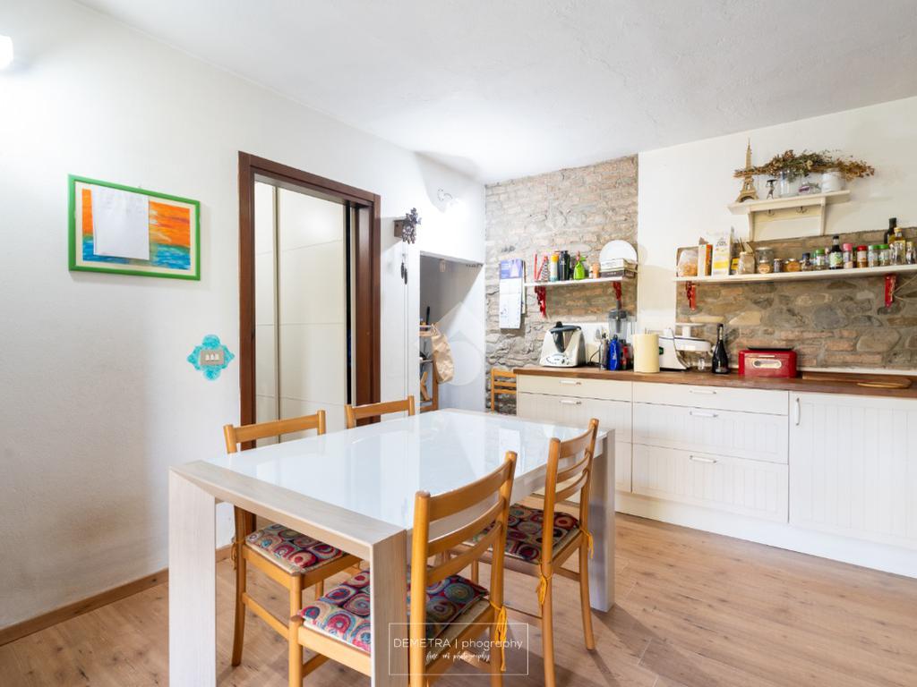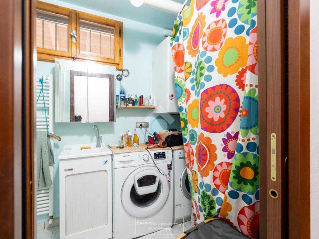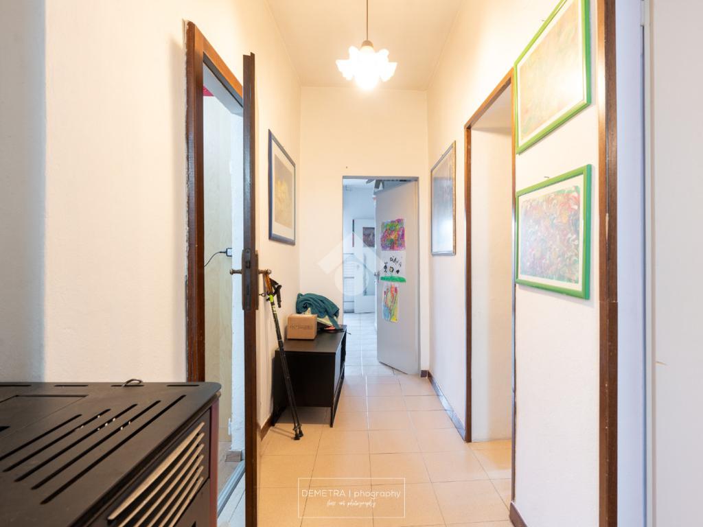 Al piano primo si sviluppa l'area abitativa ed è composta da: ingresso, soggiorno, sala da pranzo e cucina, 2 bagni, 4 camere da letto e un ripostiglio.